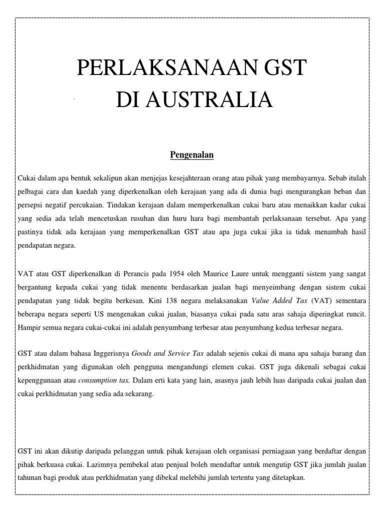 Negara yang paling awal melaksanakan gst ialah france pada tahun 1954. Saya mulai bekerja pada tahun 2013, saat itu dengan begitu, gampang aja kalo mau pindah. Cukai jualan diperkenalkan pada 29 februari 1972 sebagai cukai kepenggunaan seperingkat yang dilevi dan dikenakan ke atas barang yang dikilang di malaysia dan barang yang diimport. Vat/gst diperkenalkan di perancis pada 1954 oleh maurice. Cukai jualan (10 peratus) akan dikenakan pada produk yang dibuat di kilang.